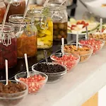 Det finns också en lounge bar. Det har också lounge för gästernas bekvämlighet. De närliggande restaurangerna inkluderar Melimilon, som ligger precis runt hörnet från detta hotell.